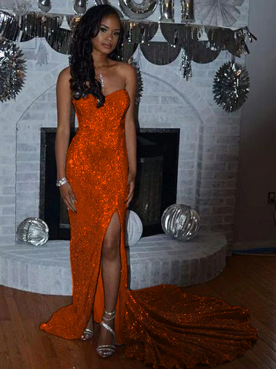 Trumpet/Mermaid Sequin Sleeveless Court Train Sweetheart Split Side Dress fg1392